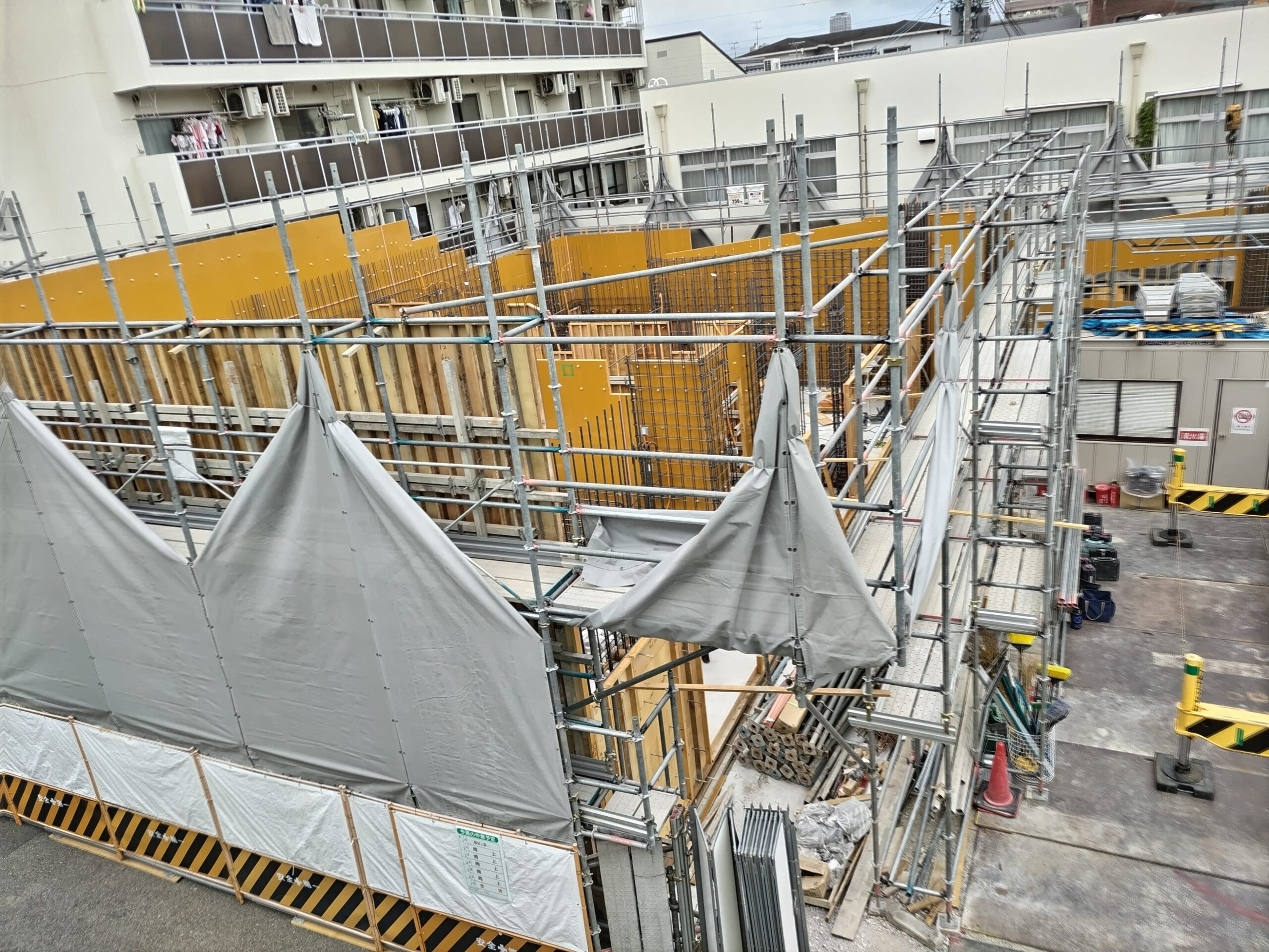壁が低くなり、防音シートも低くなってきました。