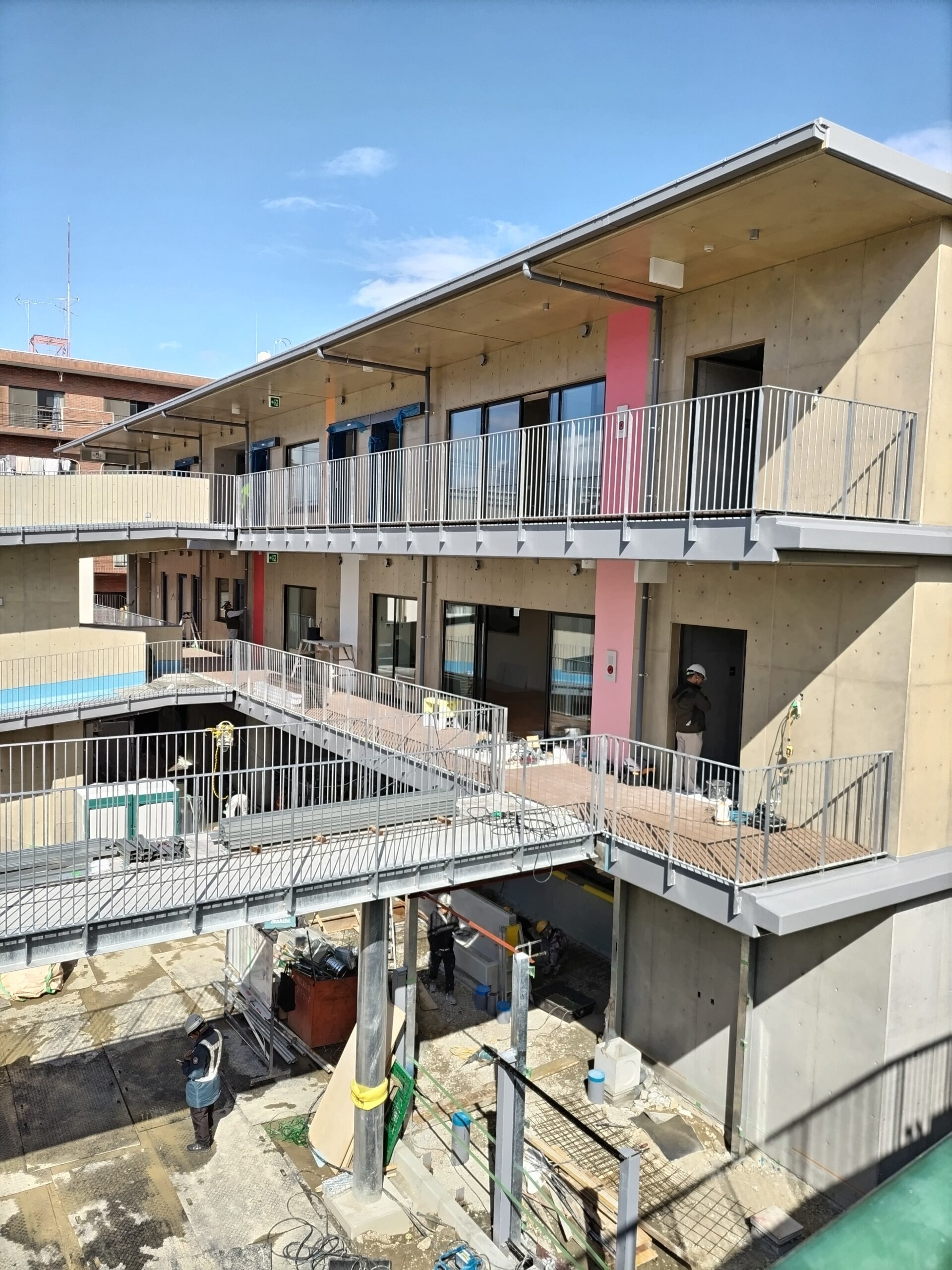 工事用の白壁に新園舎完成イメージ図が張り出されました。楽しみです!